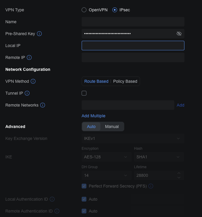 Does anyone have any idea how I can go about configuring a site-to-site VPN with either of these config options to work with OPNsense? Including, of course, how to config the OPNsense side too.