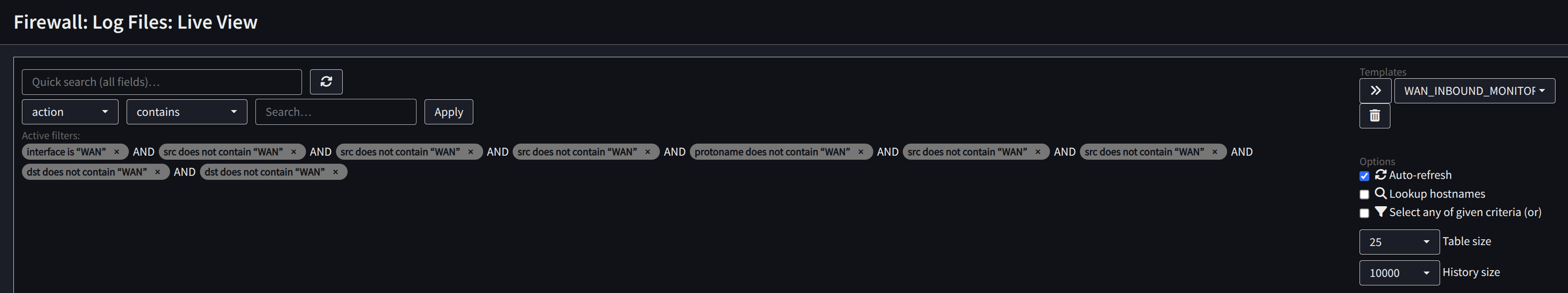 Just wanted to note I still see an issue on the live firewall log with the rules text that is presented (not in design/color, that's fixed) but in what is displayed. For instance, I have a rule for "interface is WAN" but then subsequent rules that are related to src or port will say "src does not contain WAN" or "dstport does not contain WAN" or "protoname does not contain 'WAN'" when that's not what the rule is at all. To be clear, the rules work, but after saving them, they then appear as this when selecting a saved template.