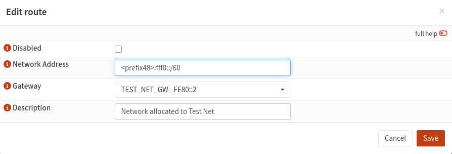 This all works fine until I reboot the main router. When it comes up, the route for <prefix48>fff0::/60 to FE80::2%vtnet3 is missing from the routing table until I click the 'Apply' button on the routing config screen on the main router.
