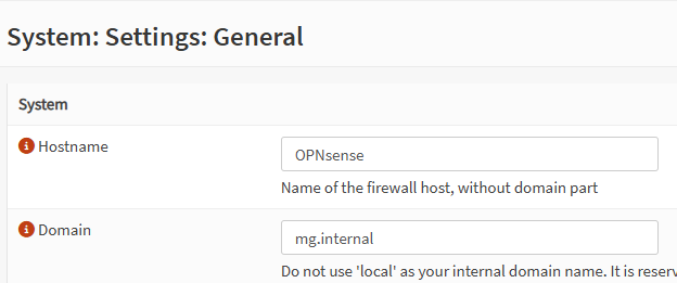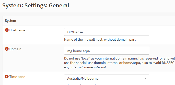 This probably makes sense, but that should get set in System -> Settings -> General, shouldn't it?  I was following the instructions there (as far as I can read) to come up with the home.arpa in the first place (wasn't my first choice!).